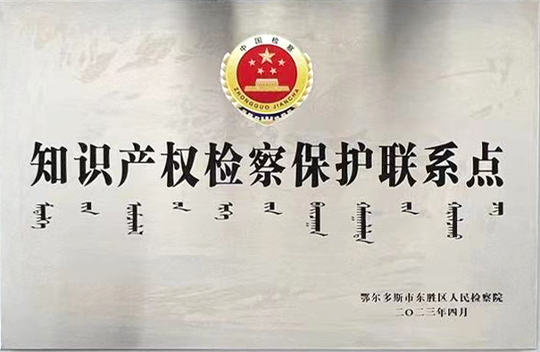 4月26日世界知識產權日當天,東勝區人民檢察院、鄂爾多斯市公安局東勝分局、東勝區市場監督管理局有關部門領導為內蒙古久科康瑞環保科技有限公司等六家單位進行知識產權檢察保護聯系點集中授牌,體現了東勝區人民檢察院對民營企業知識產權工作的支持和保護,久科環保技術總監張娜代表公司接受了牌匾。