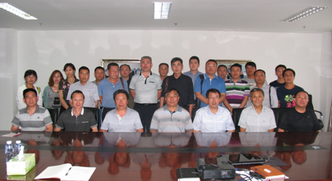 2015年7月9日下午,河北省環境保護產業協會常務副會長楊曉龍帶領河北省環保產業代表團,到內蒙古久科康瑞環保科技有限公司考察并座談。內蒙古自治區環境保護產業協會會長、久科環保董事長李戰勝向來賓介紹了內蒙古環保產業市場發展前景和久科環保的獨特技術;雙方交流了各自的需求和優勢,達到相互了解、市場互惠、共同發展、互利雙贏的效果。來賓對久科環保高含鹽廢水處理項目高度認可,并邀請久科環保及環境治理院士專家工作站參與河北省環境保護建設。產業協會常務副秘書長鐘建春、久科環保副總經理張全生、李長勝等出席了座談會。