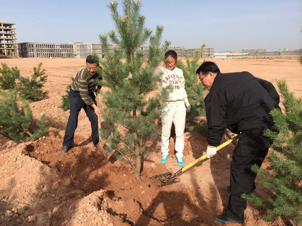 為即將啟動的鄂爾多斯久科節能環保產業園區能有一個優美的工作環境,4月26日在不占用正常上班時間的情況下,并且為了保證樹苗在最好的時間內下種,確保成活率,久科環保全體員工集體出動,加班加點,披星戴月,趕在樹苗成活的最佳時節里開展并圓滿完成植樹造林、綠化園區活動,累計植樹2226顆,覆蓋廠區各個角落,放眼望去,一排排樹苗拔地而起,使園區生機盎然,滿眼綠色。