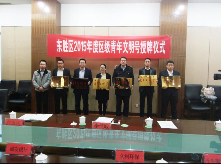 2016年1月29日上午8點30分,鄂爾多斯市東勝區2015年度“青年文明號”授牌儀式在東勝區團委舉行。久科環保等14個集體榮獲東勝區“青年文明號”稱號,東勝區團委副書記李佳政主持會議并對獲獎集體授牌。