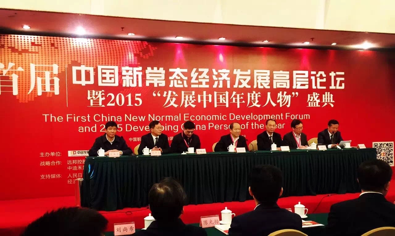 2016423日,由國家發改委中國經濟導報社、國家發改委中國發展網主辦的首屆中國新常態經濟發展高層論壇暨2015“發展中國年度人物”盛典在北京釣魚臺國賓館/中國職工之家隆重舉行。全同政協第十一屆副主席阿不來提·阿不都熱西提發來賀信,國家發展改革委原副主任、中國國際經濟交流中心副理事張曉強、中央政策研究室原副主任、中國國際經濟交流中心副理事長鄭新立、中國人民銀行研究局首席研究員鄒平座、國家發展改革委宏觀經濟研究院副院長馬曉河作論壇主旨演講,來自產學研究等各領域的數百位嘉賓出席了本屆論壇。